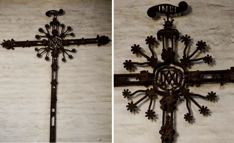 pies de la nave del Evangelio. Fechada en el siglo XVI es una cruz de hierro forjado, sostenida por dos
