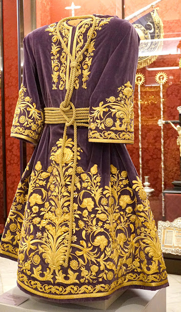 Túnica morada. S. XX. Paño de lana merino morado. Cíngulo. S. XX. Cordón de calabrote de oro fino de 24 quilates
