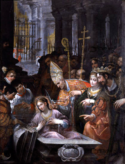 martirizado sobre una cruz en aspa. Tras extraerle las entrañas, momento