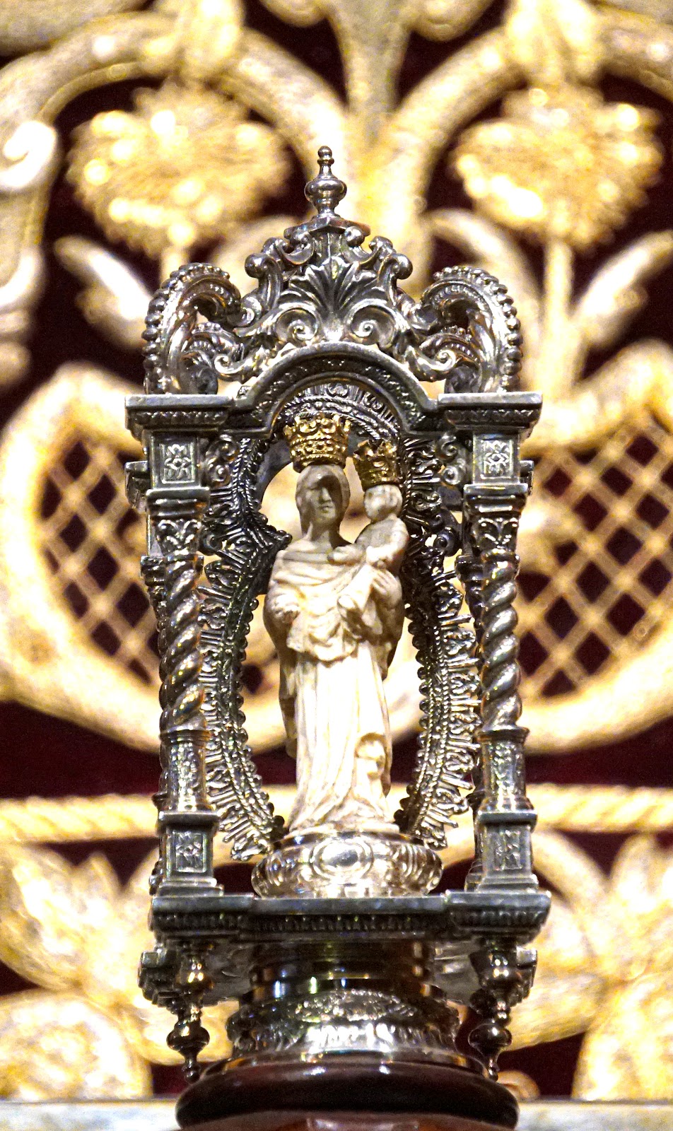el Niño, una iconografía de Virgen-Trono característica del medievo, pero muy