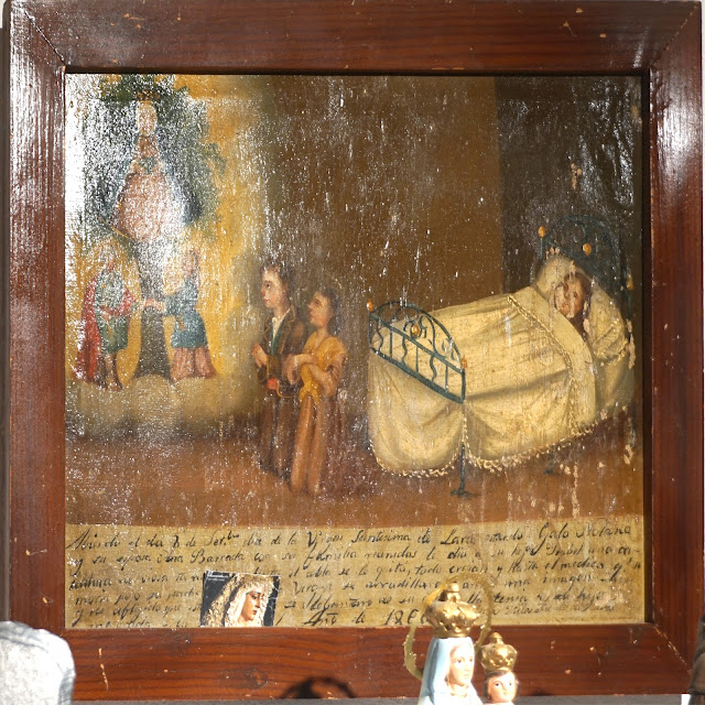 una serie de objetos y cuadros relacionados con milagros realizados por la