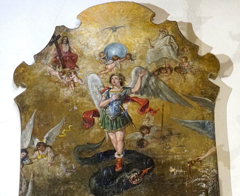 un lienzo de las Animas Benditas y san Martin, anónimo del siglo XIX.